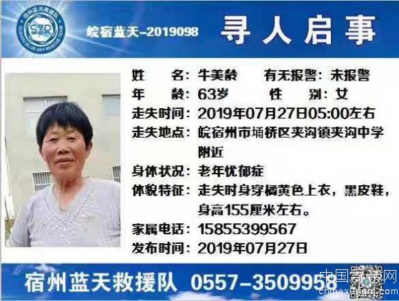 正文 失踪人员:寻找母亲,牛美玲! 访客 V游客 /1970-01-01/1.01 W阅读/0评论 0101 姓名: 寻找母亲,牛美玲! 性别: 女 生日: 籍贯: 失踪时间: 失踪地点: 失踪时身高: 在线联系: 微信号:shandong-1218 详情 牛美玲,女,63岁,安徽省宿州市夹沟镇人,与2019.7.27,早上和家人生气离家出走至今未归,有见到的或者收留的,请联系我,电话,13655575899重金酬谢!! 寻人启事资料、照片等均由用户提供,如侵犯任何第三人肖像权、隐私权或其他合法权益,请联系本站删除!