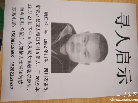 正文 失踪人员:康红华 访客 V游客 /1970-01-01/9.31 K阅读/0评论 0101 姓名: 康红华 性别: 男 生日: 1982 籍贯: 四川资阳安岳县鸳大镇归阳村 失踪时间: 2019-12-27 失踪地点: 四川资阳安岳县鸳大镇 失踪时身高: 在线联系: 微信号:shandong-1218 详情 2019年12月27号下午,在四川资阳安岳县鸳大镇始终,至今未归,男,37岁 寻人启事资料、照片等均由用户提供,如侵犯任何第三人肖像权、隐私权或其他合法权益,请联系本站删除!